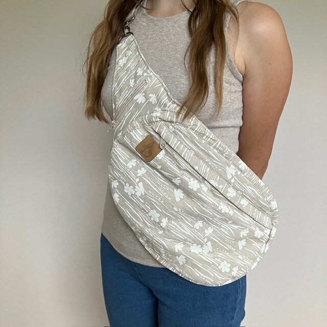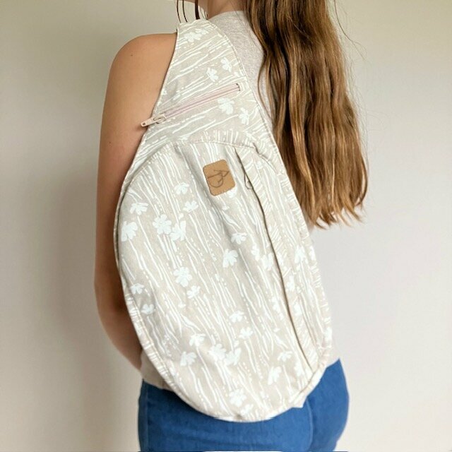 Gurttasche natur mit weißer Blumenwiese