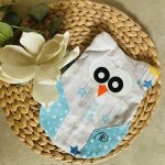 Farben: grau mit süßem Aufdruck von Sternen, Fuchs, Mond, Ballon kombiniert mit türkisen Sternen