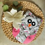 Farbe: grün-Pinkes geometrisches Muster kombiniert mit pinken Tupf